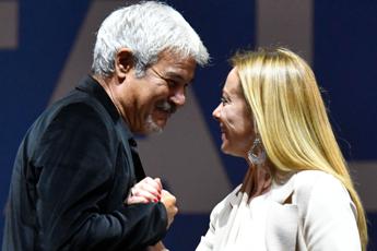 Elezioni 2022, Pino Insegno sul palco di Roma presenta Giorgia Meloni
